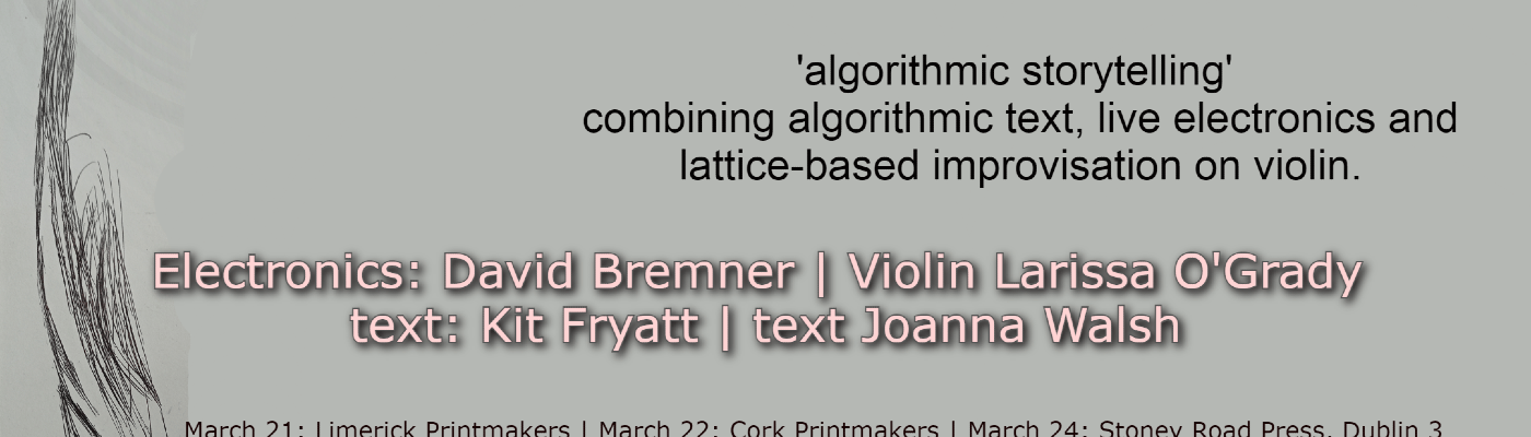 During March 2022, in venues in Dublin, Cork and Limerick Béal presents ‘shadow once complete’ a new collaboration, developed from the Contemporary Music Centre’s CMC Colleagues scheme, between violinist Larissa O’Grady (of Crash Ensemble) and composer David Bremner. They have devised an ‘algorithmic storytelling’ combining algorithmic text, live electronics and lattice-based improvisation on violin.